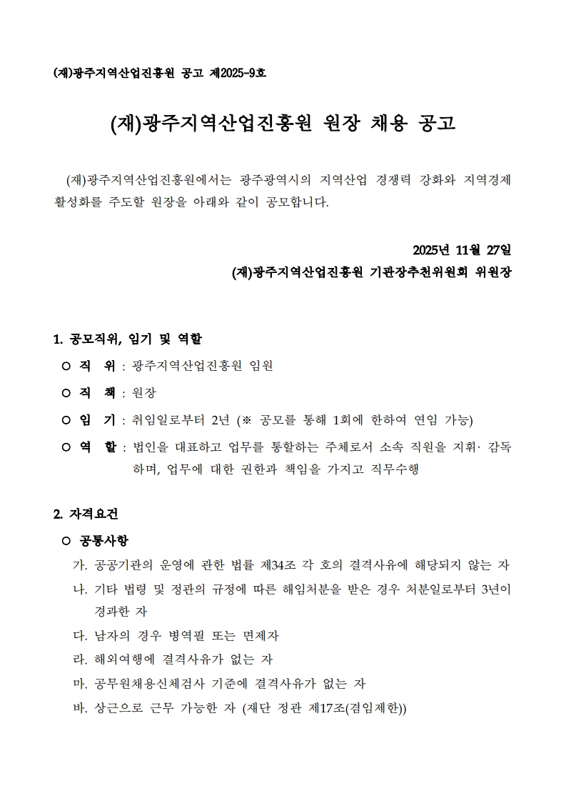 01. (광주_공고문) 광주지역산업진흥원 원장 채용 공고.pdf